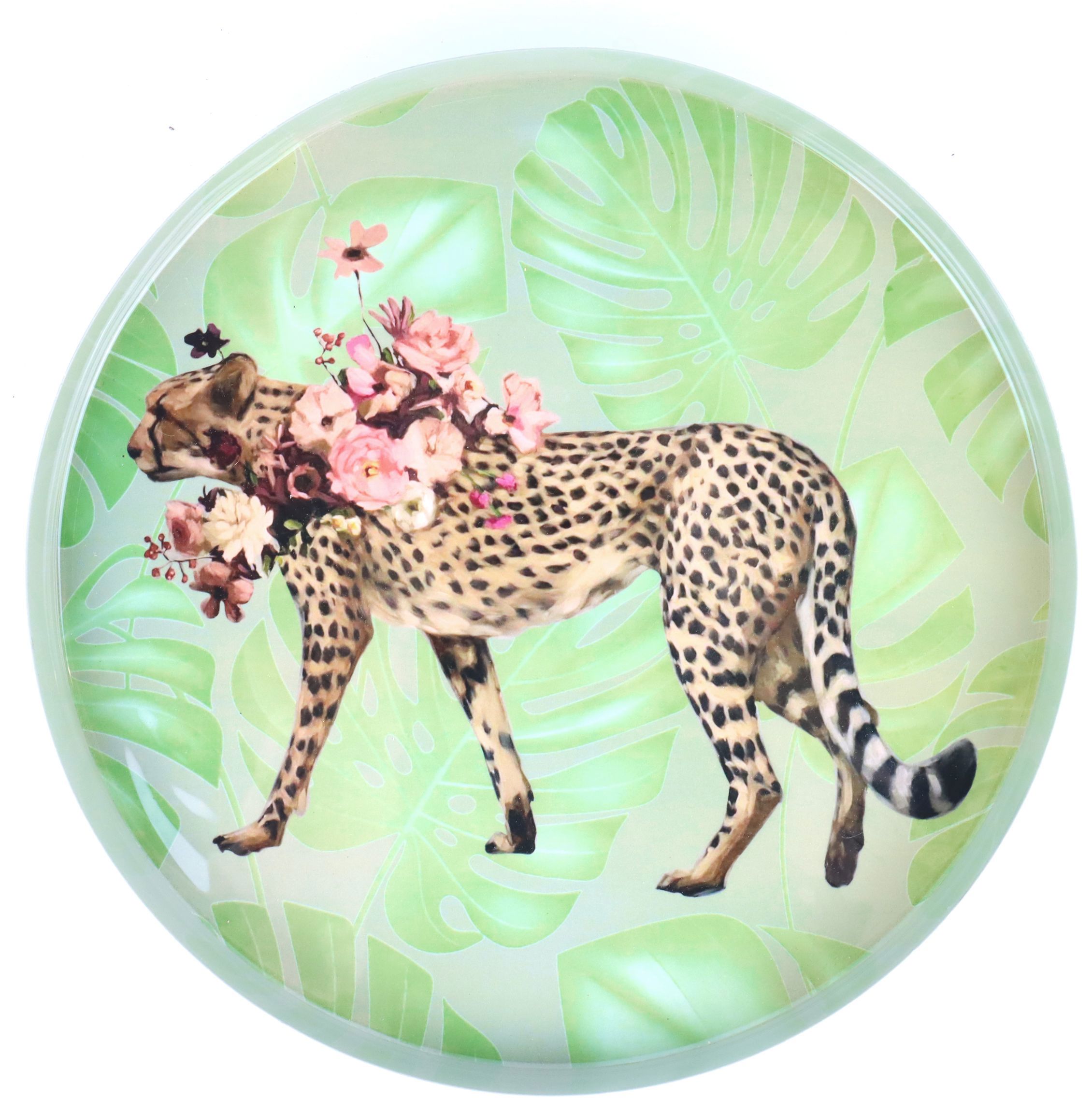 Il motivo leopardato, abbinato a una collana floreale disegnata ad arte, conferisce al vassoio un tocco elegante ma selvaggio. Perfetto per creare accenti nello showroom o per presentare i prodotti con stile. Il design si rivolge ai clienti che apprezzano i dettagli estetici e desiderano integrare un pezzo di natura nei loro spazi abitativi.