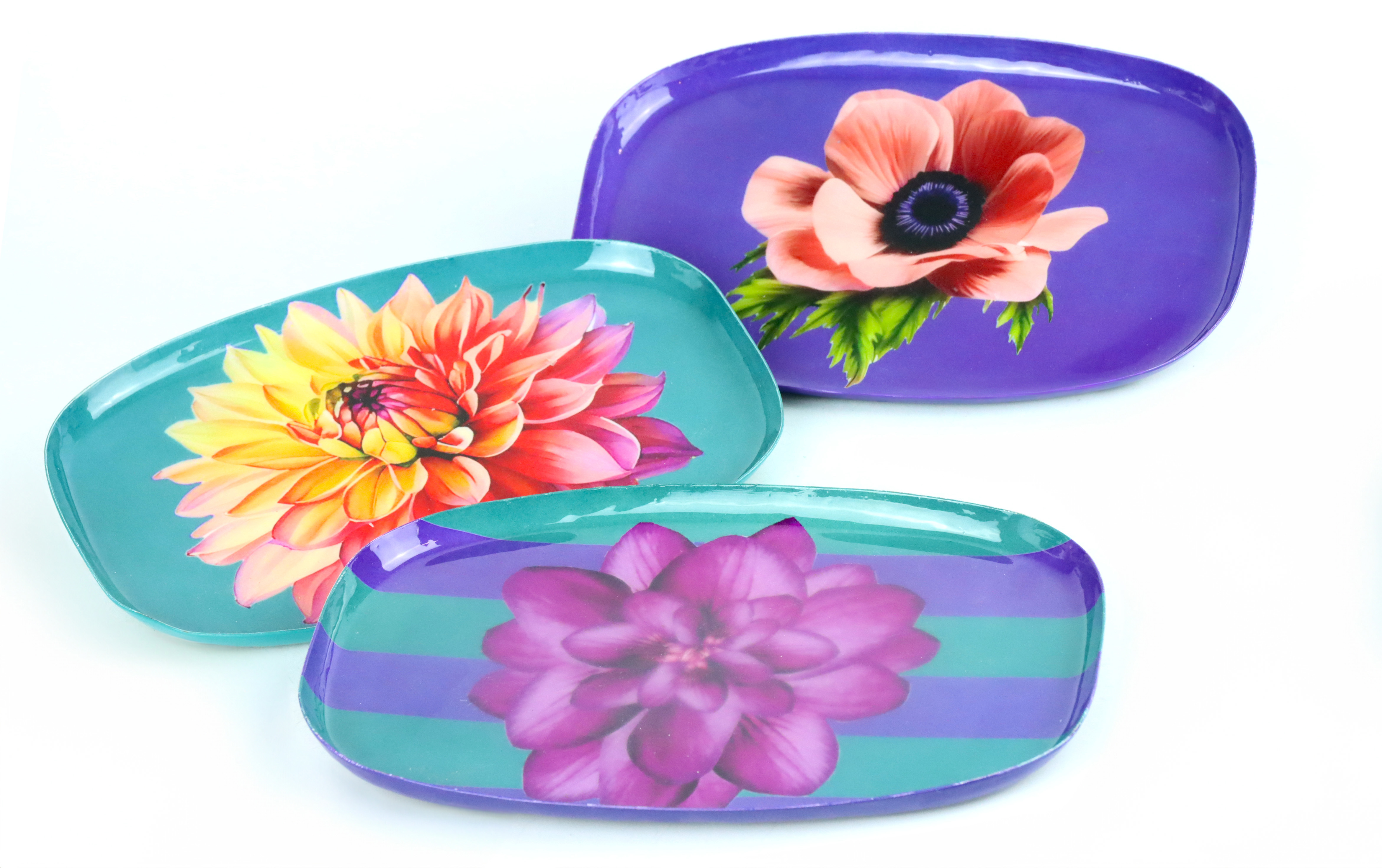 Portate un'atmosfera fiorita nella vita quotidiana dei vostri clienti con il set TABLETTS "BLOSSOM" S/3 e arricchite il vostro portafoglio prodotti con un accessorio distintivo per la casa.