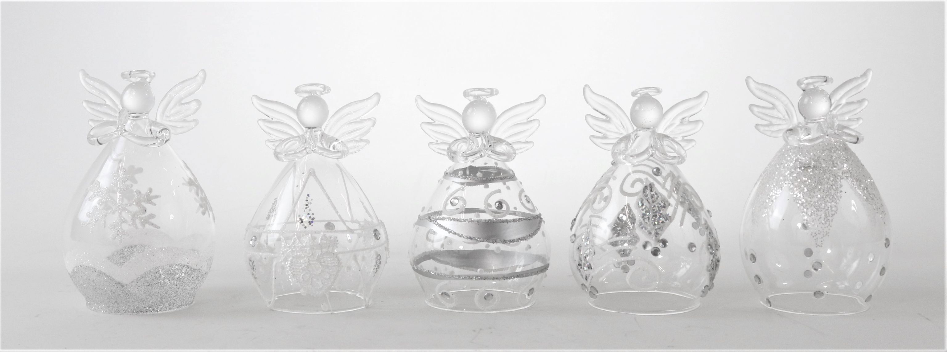 Gli angeli di vetro, alti circa 9,5 cm, sono lavorati a mano e conferiscono a ciascun angelo un fascino individuale. Grazie al loro aspetto vitreo, gli angeli sono eleganti e senza tempo. Immergono ogni stanza in un'atmosfera di festa e invitano a soffermarsi ad ammirarli. Possono essere disposti come set o singolarmente.