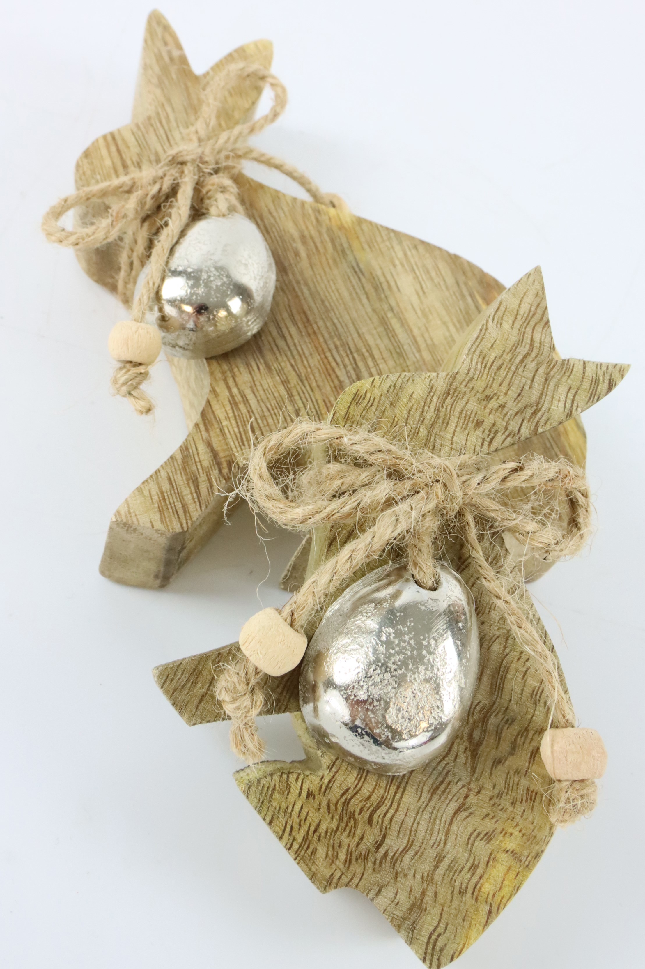 Il resistente legno di mango con cui è realizzato il set non solo garantisce una qualità robusta, ma rappresenta anche un'opzione di produzione sostenibile e rispettosa dell'ambiente per i clienti attenti all'ambiente nel settore della vendita al dettaglio. In cambio, vi offriamo una finitura di alta qualità e un design senza tempo che può essere perfettamente combinato con altri prodotti della vostra collezione. Inoltre, le linee dolcemente curve e la superficie finemente lavorata delle statuette del coniglietto fanno sì che siano dei veri e propri eye-catcher che suscitano emozioni e mettono i vostri clienti in uno stato d'animo pasquale.