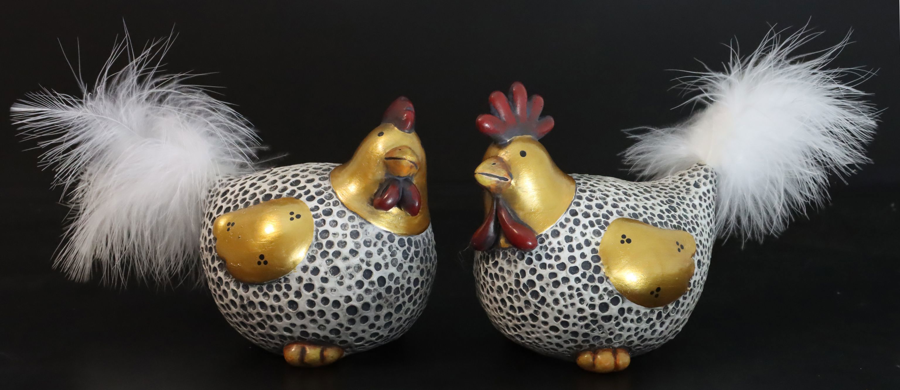 - **Esclusivo set da 2 pezzi:** Include le moderne figurine di gallo e gallina.