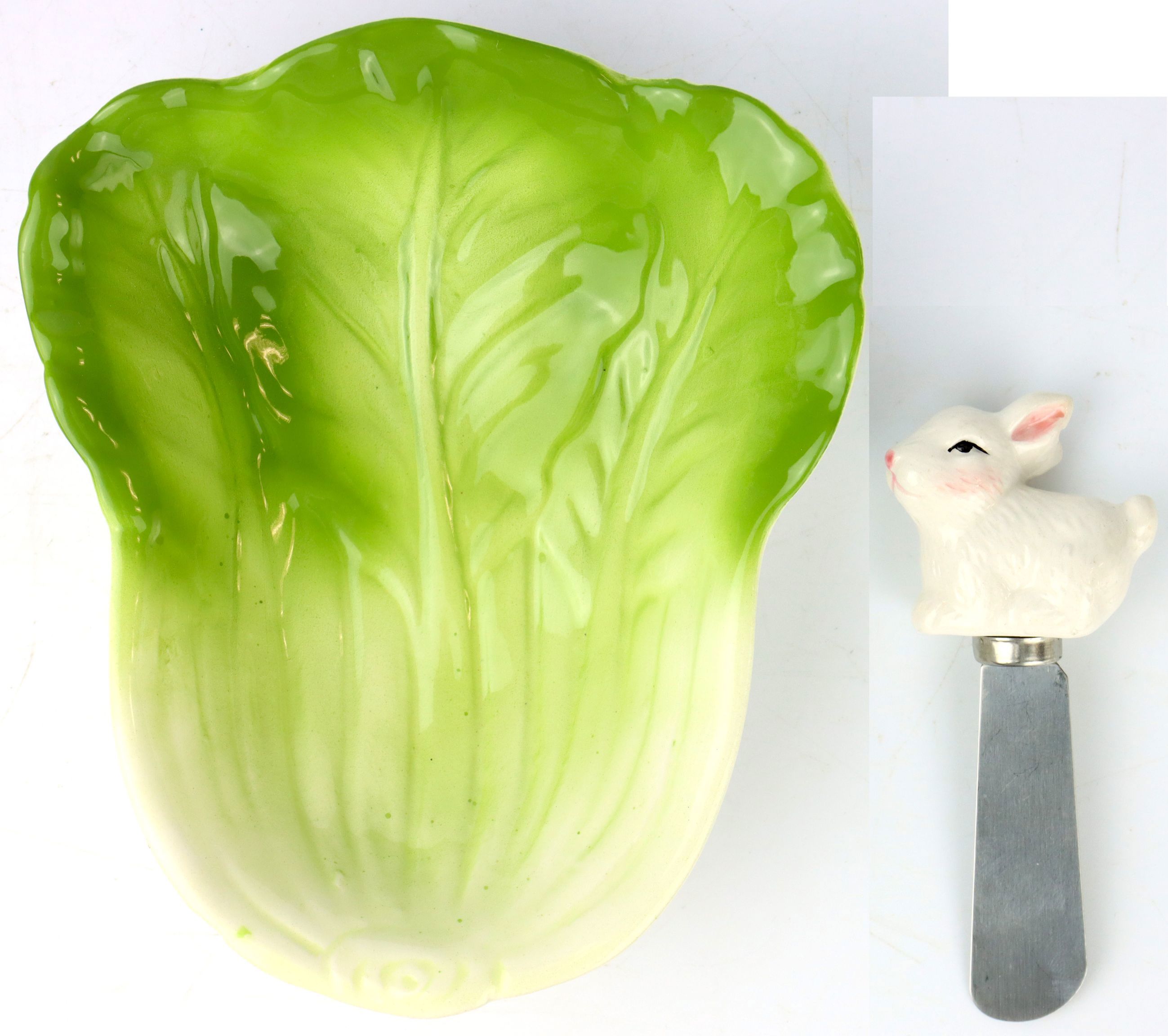 IT### Descrizione del prodotto: set pasquale "Buona Pasqua" - ciotola a forma di foglia in ceramica con coltello