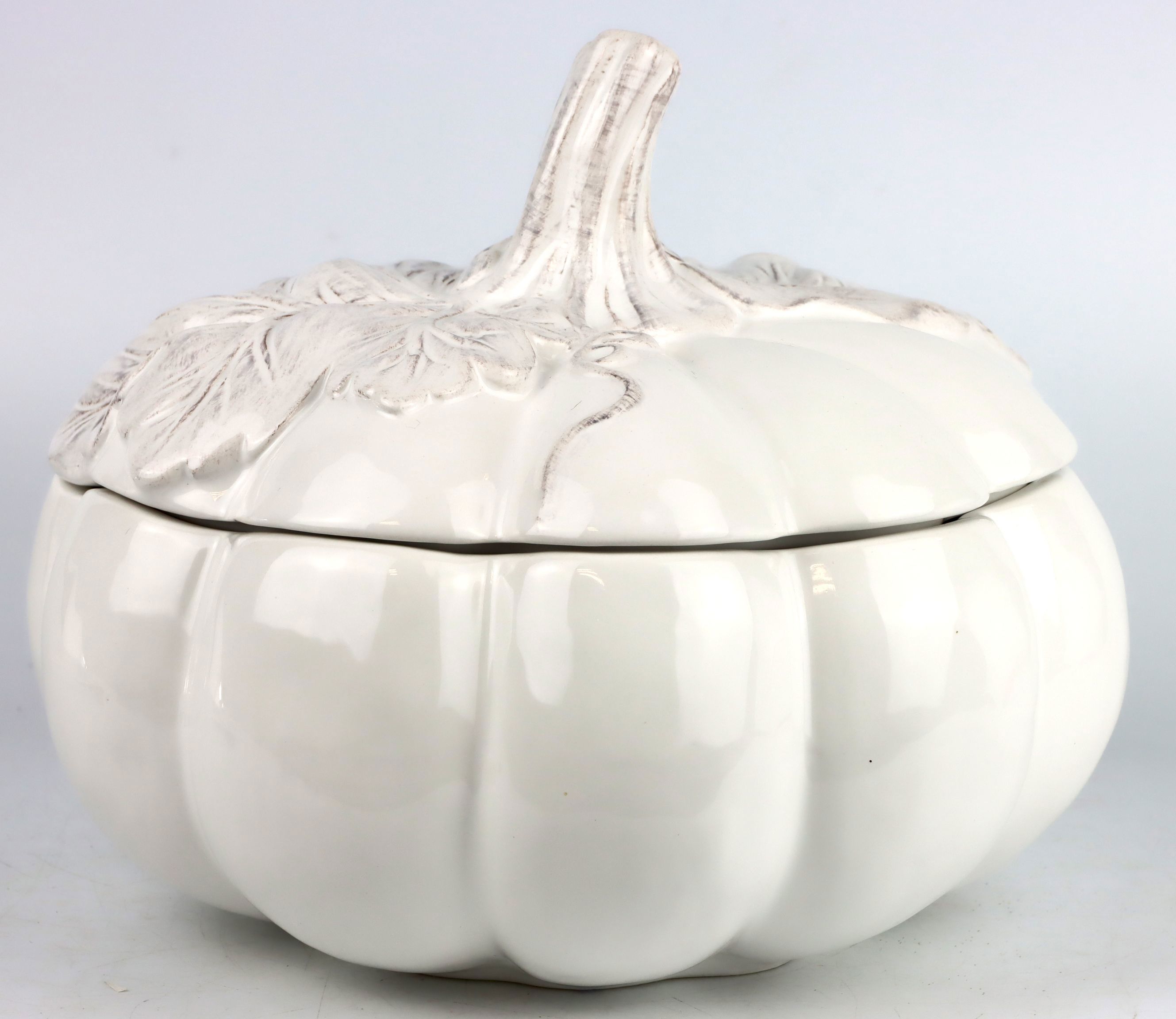 Colpisce per il suo design espressivo: una zucca bianca adorna la zuppiera ed è il pezzo forte. I dettagli finemente lavorati di questa zuppiera artigianale le conferiscono un fascino individuale e artistico. Emana una naturalezza e un'eleganza che arricchiscono qualsiasi arredamento.