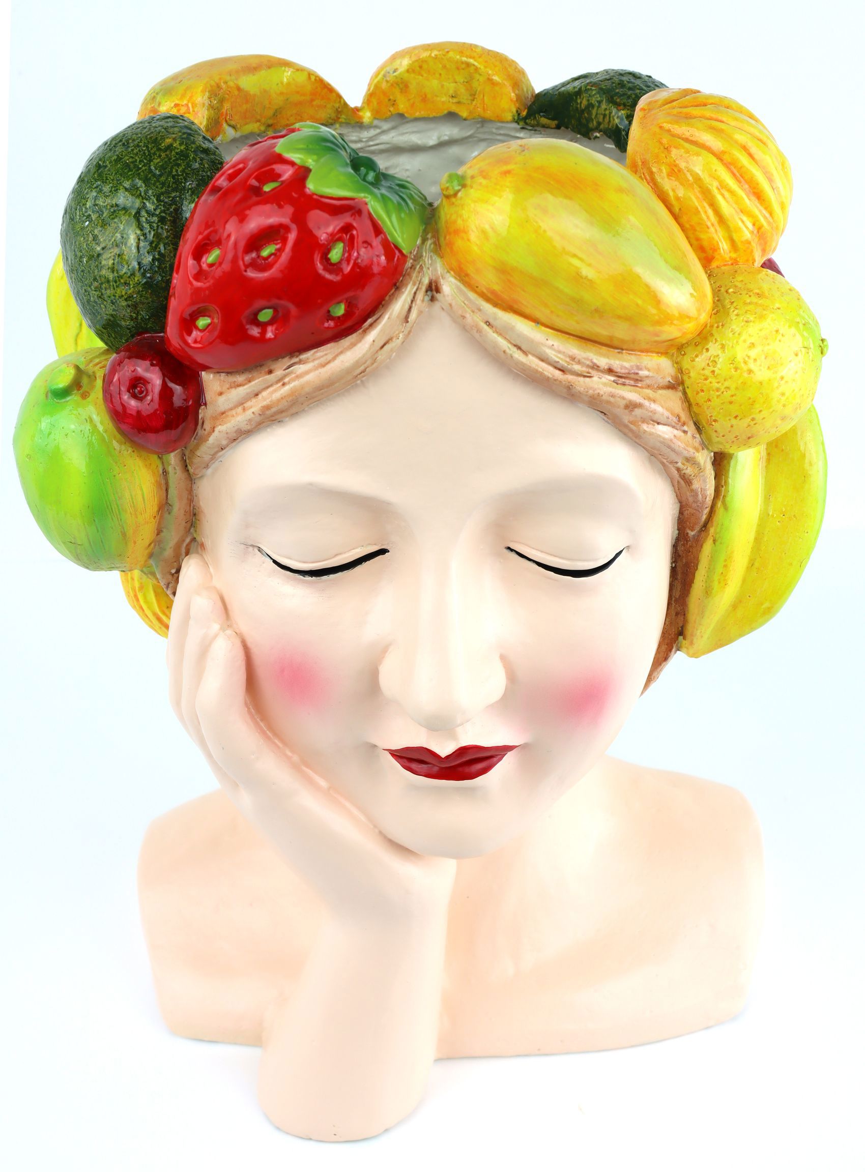 1 **Varietà di utilizzi:** La testa di donna con frutta è un oggetto decorativo versatile, adatto alla decorazione di vetrine, al design di negozi o come centrotavola d'effetto in qualsiasi stanza.