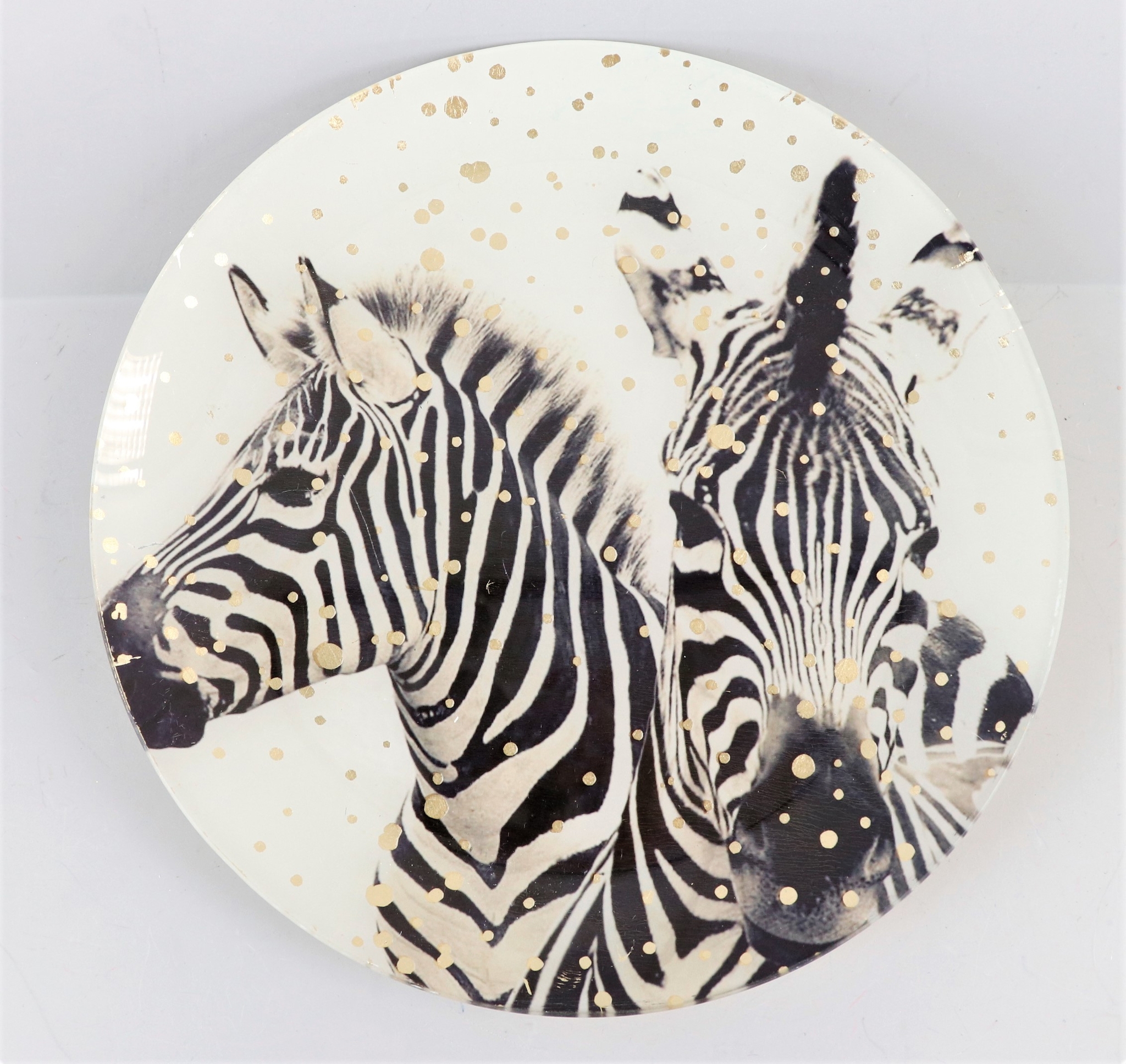 Scoprite l'esclusiva targa in vetro "ZEBRA", che sarà un'aggiunta di grande effetto alle vostre esposizioni di prodotti quest'autunno/inverno. Con un diametro di 30 cm, questo piatto in vetro dal design artistico offre un perfetto equilibrio tra funzionalità e design. Realizzato in vetro di alta qualità, vanta una finitura robusta ed elegante che i vostri clienti apprezzeranno particolarmente.