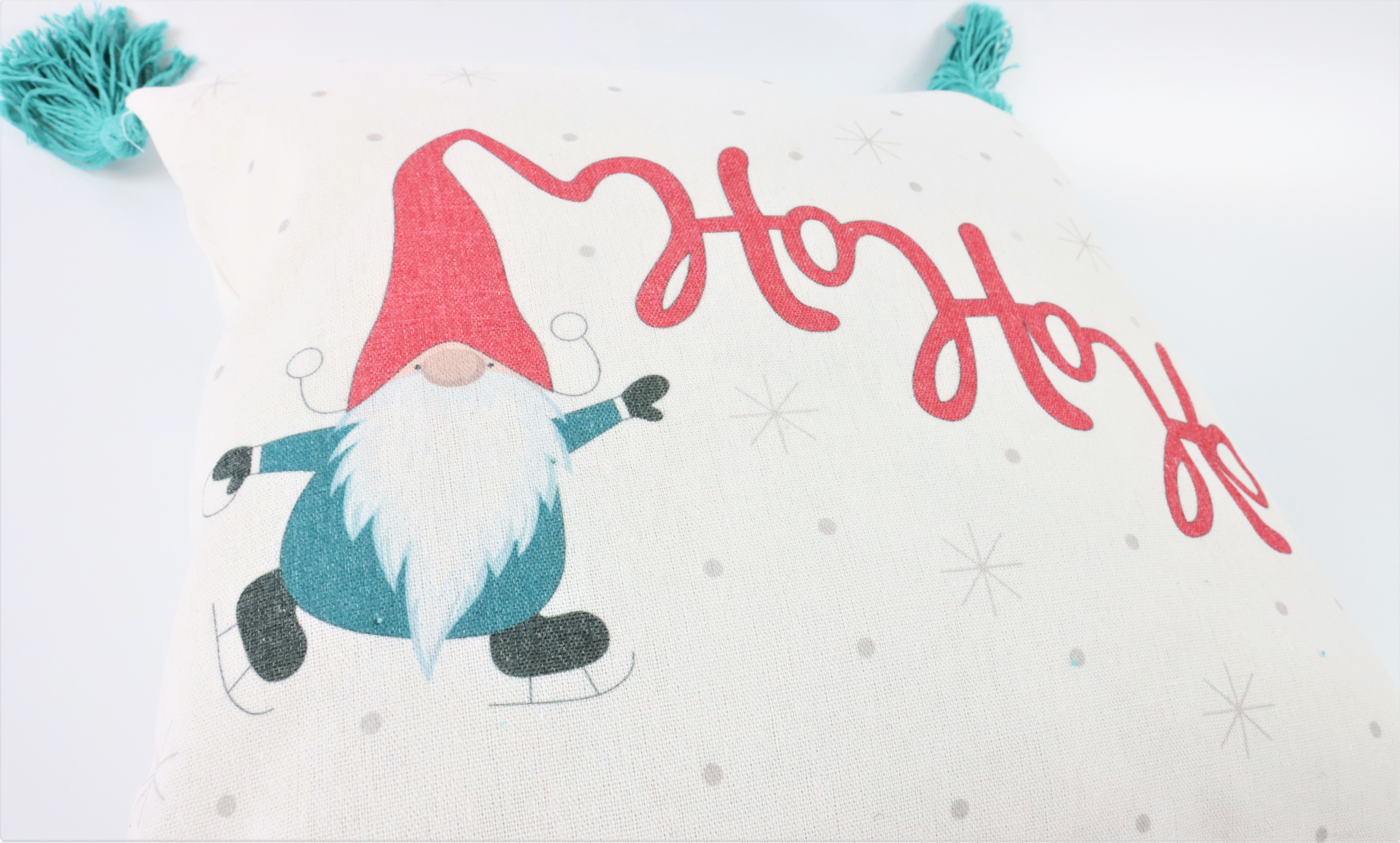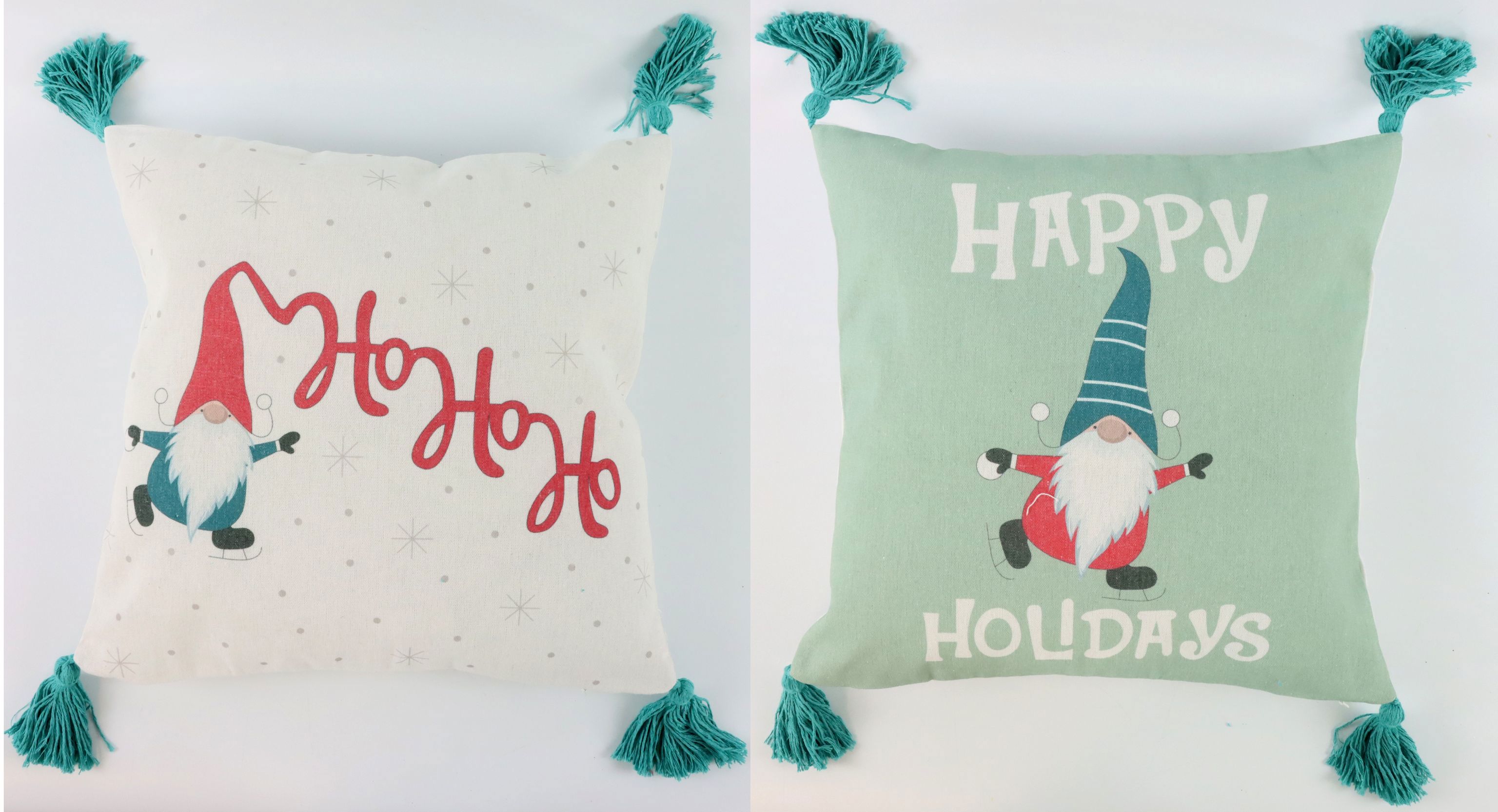 - Design festoso:** I copricuscini con il disegno di uno gnomo in verde e bianco sono un vero e proprio richiamo visivo e contribuiscono all'atmosfera natalizia.