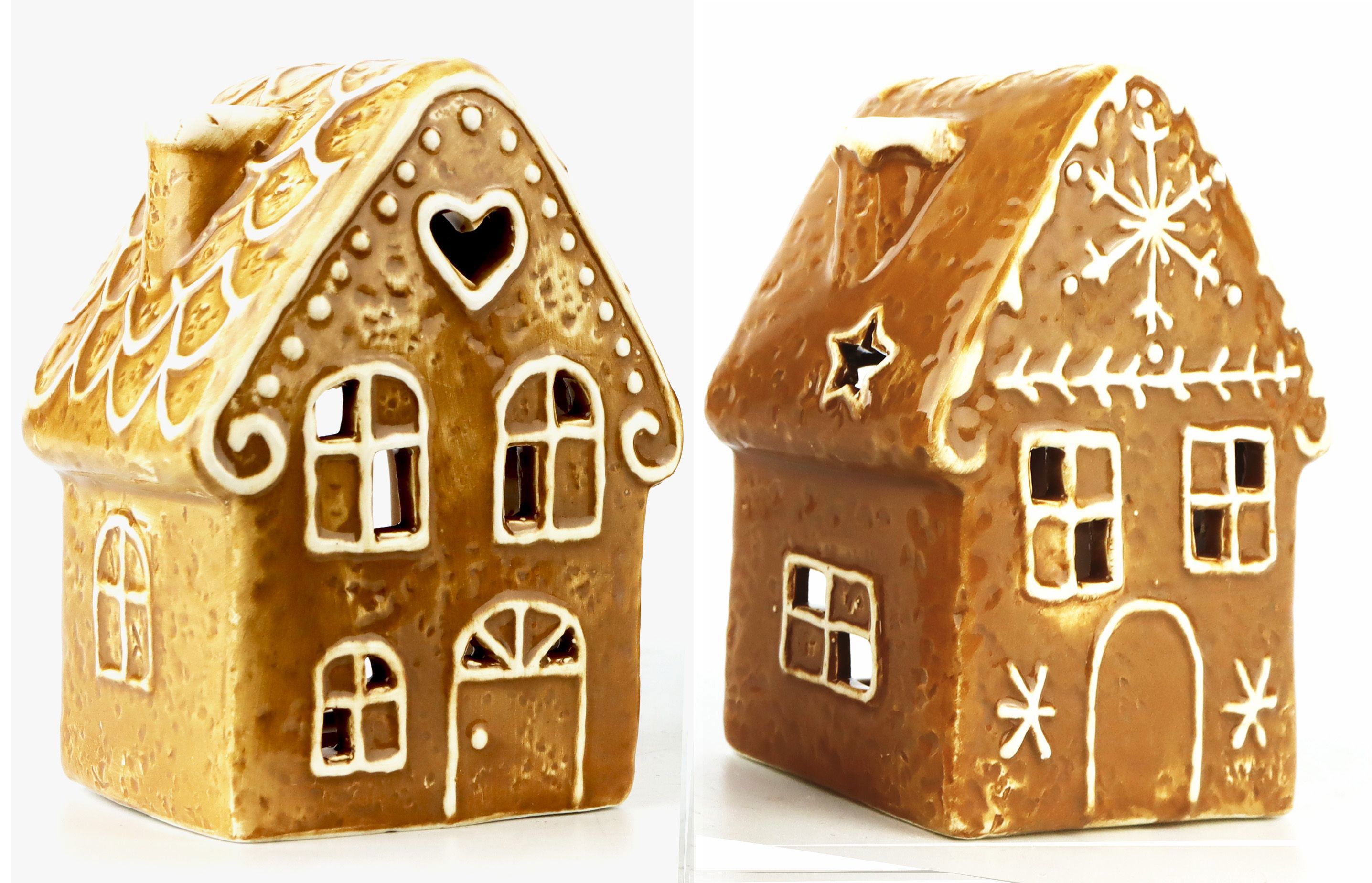 Ogni casa è decorata con ornamenti di glassa dettagliati e decorazioni ornamentali che ricordano le case di pan di zenzero progettate con amore. Con spazio per una tea light ciascuna, le casette proiettano una luce calda e tremolante che avvolge il vostro spazio vitale in un'atmosfera contemplativa e accogliente. Sono ideali per essere utilizzate in salotto, sui davanzali delle finestre o come elemento di spicco delle decorazioni per la tavola delle feste.