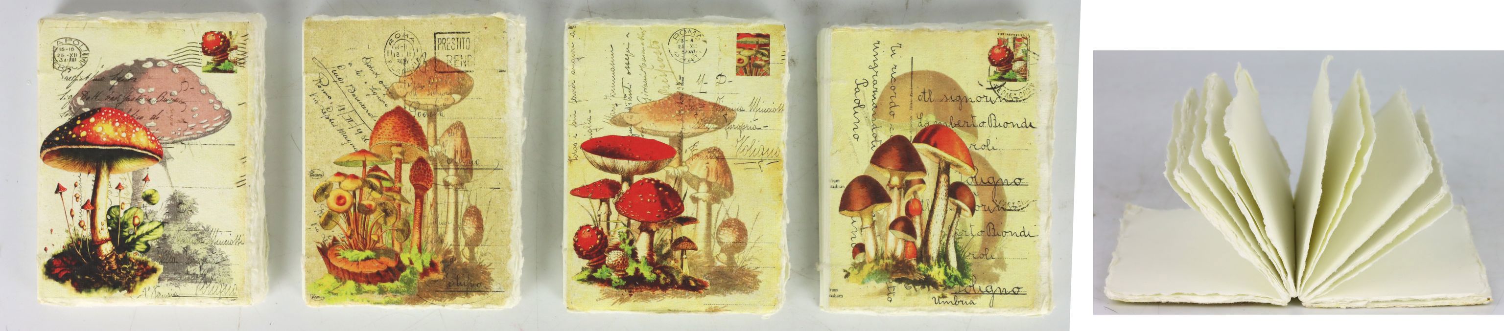 - Set di quattro quaderni con un accattivante design a "fungo fortunato".
